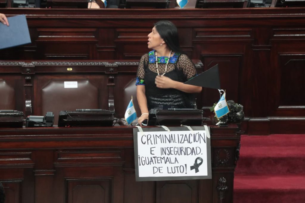 Como el caso de la diputada Sonia Gutiérrez Raguay que en la sesión solemne en conmemoración del 15 de septiembre en el Congreso de la República, el jueves 11 de septiembre, llego vestida con tonos negros, un ramo de rosas marchistas y un cartel que colocó en su curul que decía lo siguiente “Criminalización e inseguridad ¡Guatemala de luto!”, mensaje que llamo la atención de todos los presentes. Así como Magistrados de la Corte de Constitucionalidad, Tribunal Supremo Electoral y cuerpo diplomático.
