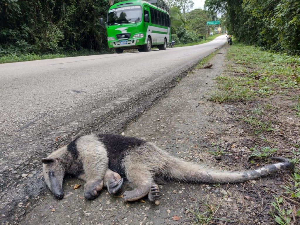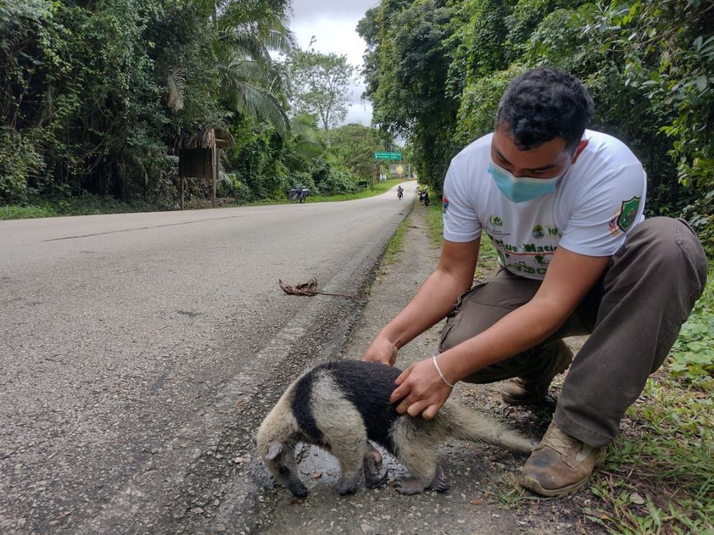 Recientemente, un oso hormiguero de chaleco fue atropellado por un vehículo, dejando su cuerpo inerte en la cinta asfáltica, así como el oso, han aparecido zorros grises, tacuazines, serpientes, tortugas, entre muchas otras especies. El encargado del PANER, Alejandro Posadas, indica que se han hecho esfuerzos con la Policía Nacional Civil -PNC y agentes de la Policía Municipal de Tránsito de Sayaxché, para concientizar a los conductores que transitan por esta vía importante, para reducir la velocidad a 40 kilómetros mientras se desplaza por esos cuatro kilómetros y medio, se colocó señalización con pintura especial reflectora, que atravesó la carreta como recordó del paso de animales. Además, de que si ven a un animal atravesar dicha carretera, respetar el paso bajando o parando su vehículo, más sin embargo esos esfuerzos han sido en vano ya que se constató por varios minutos la velocidad con la que transitan la mayoría de transportistas y es por encima de la velocidad permitida.