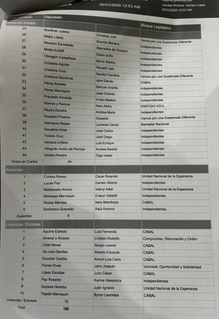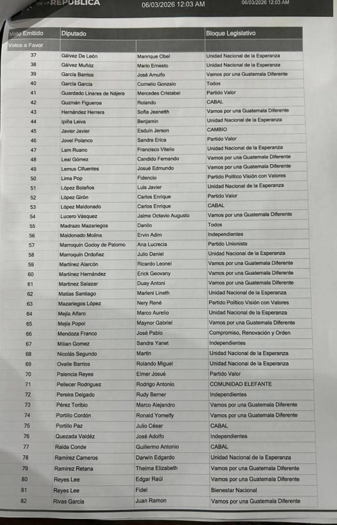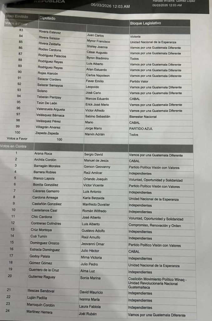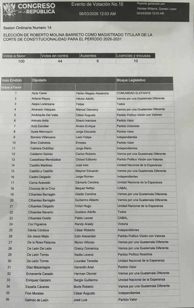 Luego de una larga y tensa jornada de más de 15 horas, el Congreso de la República eligió en la madrugada del viernes 06 de marzo a sus dos magistrados para la próxima Corte de Constitucionalidad (CC) período 2026-2031.