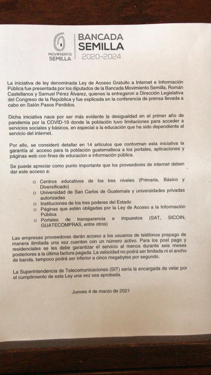 La Bancada semilla presentó una iniciativa de ley, #InternetGratis, este jueves 04 de marzo, con el objetivo de brindarle educación e información pública.