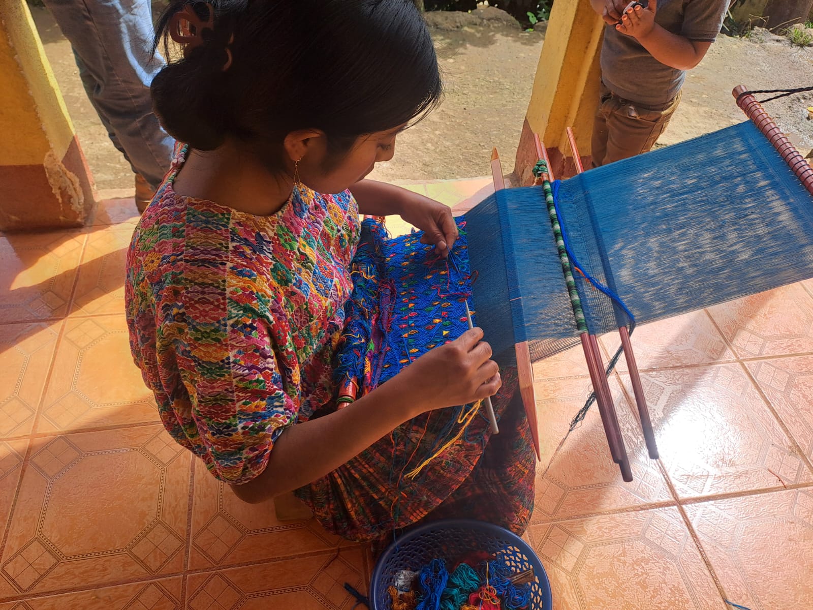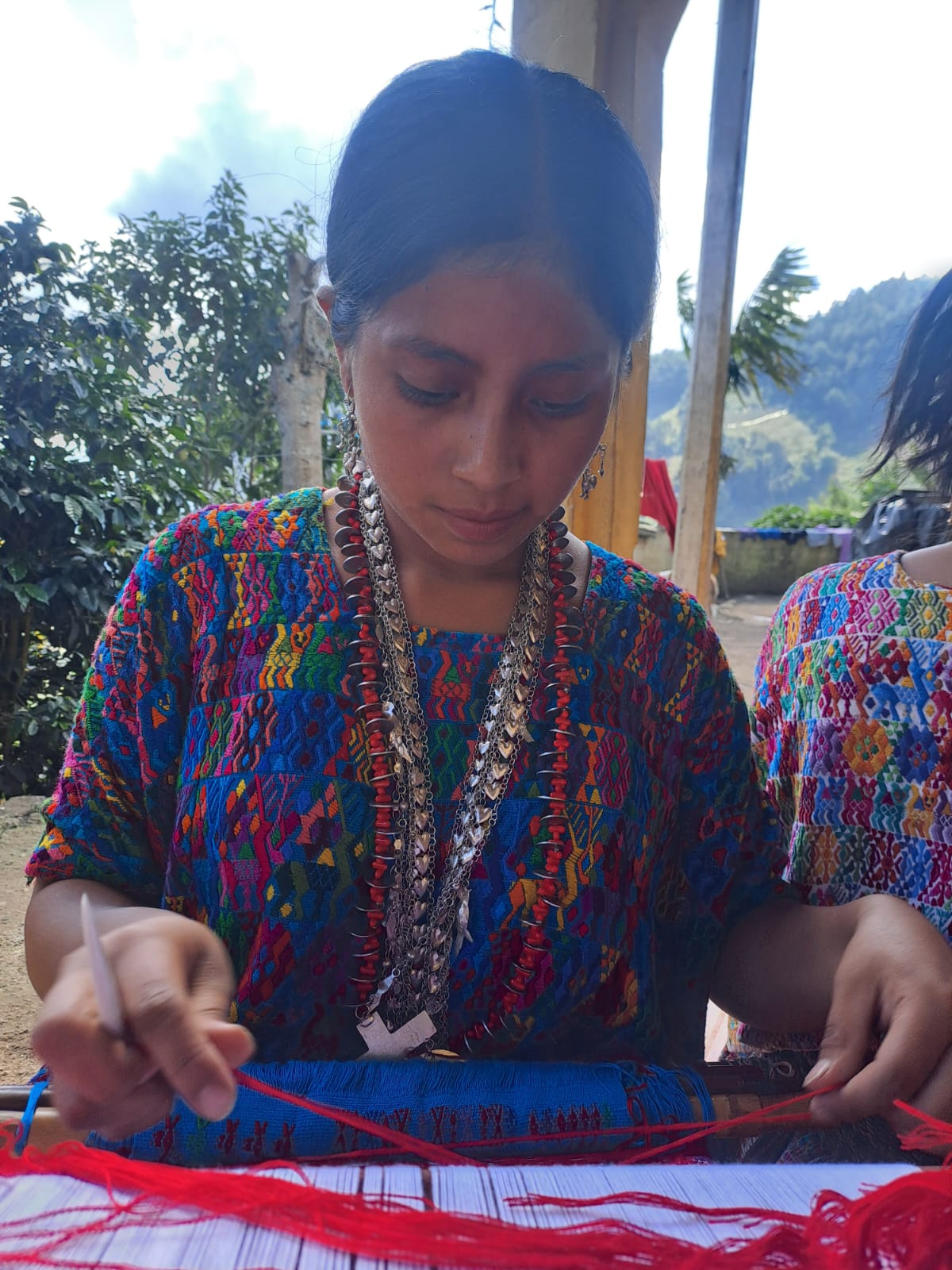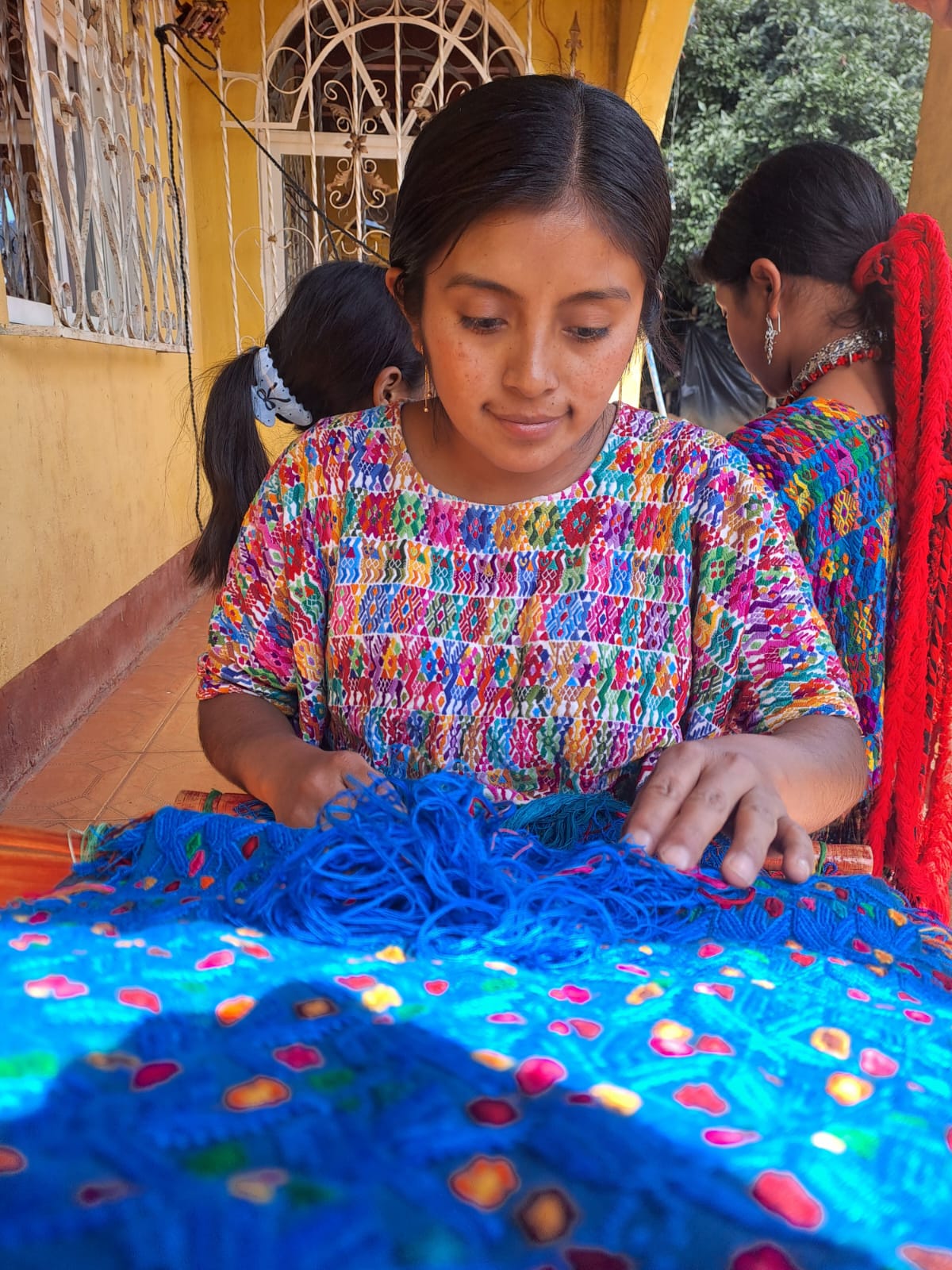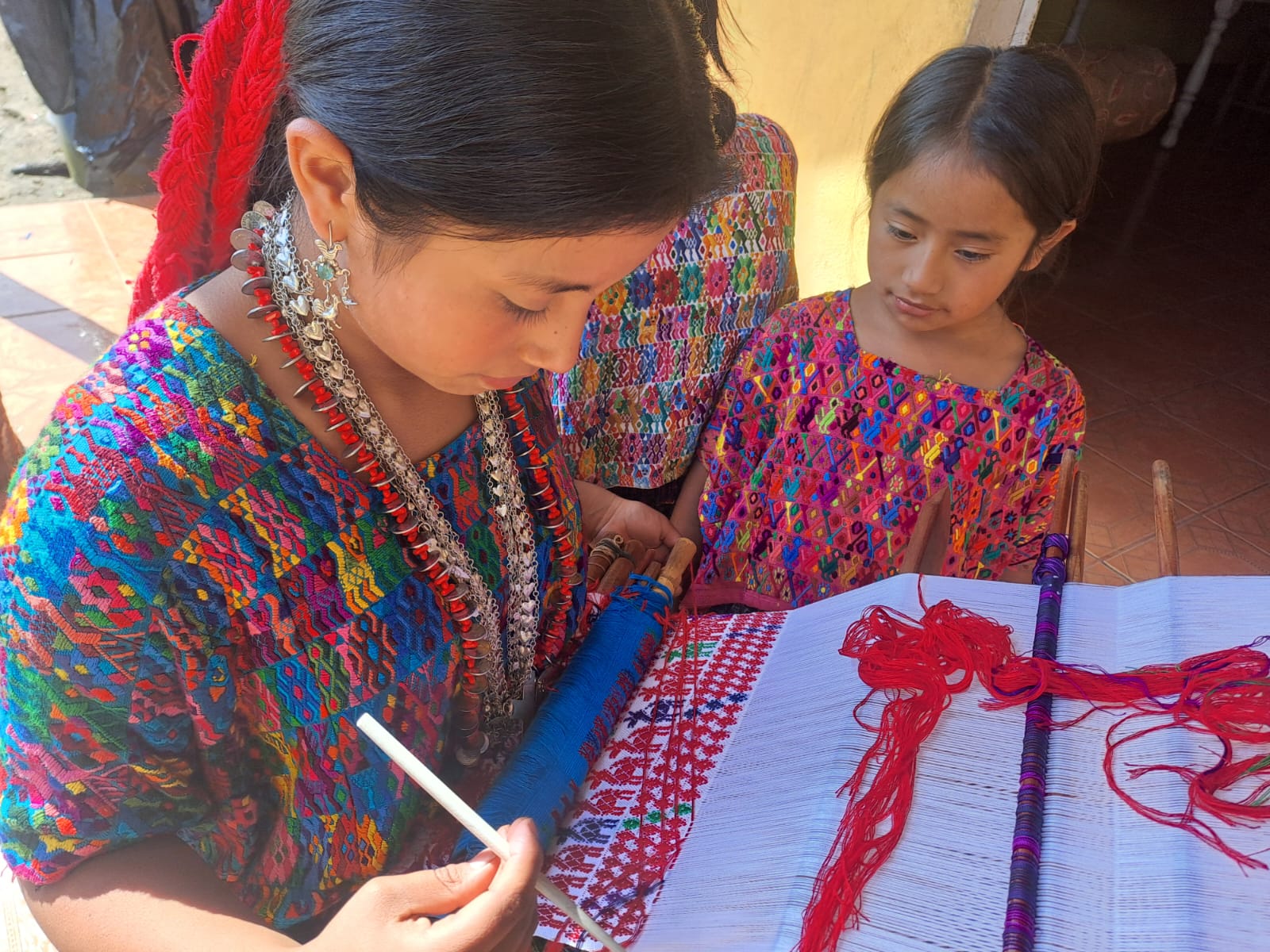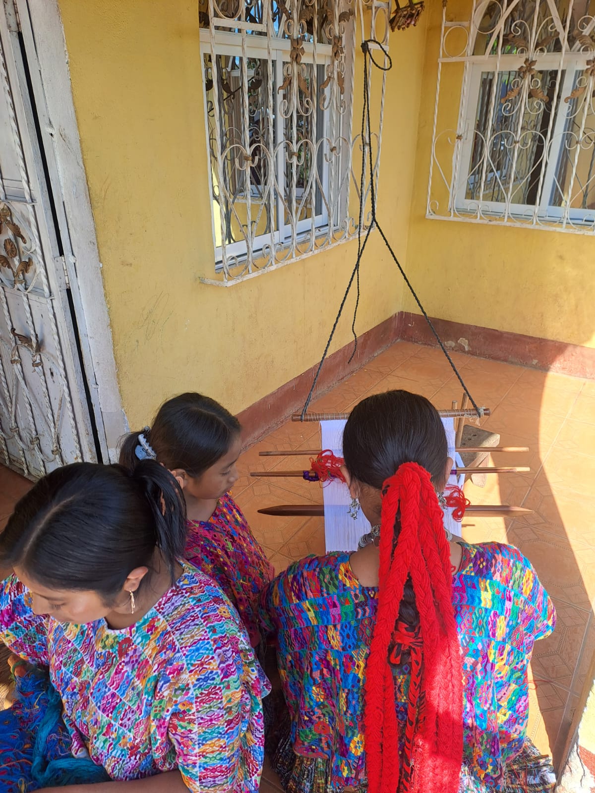 Desde las primeras horas de la mañana, las mujeres de la familia Jalal Cu se sientan en el corredor de su casa. Sacan sus cestos de hilo, preparan el telar de cintura e inician las labores de tejeduría.